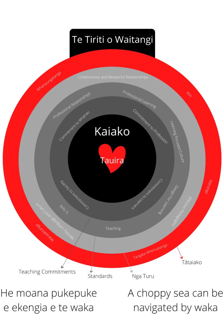 Other areas of the standards, commitments, Tapasā turu and tātaiako compentencies also follow a similar overlap, and are mostly able to be implemented concurrently through being a thoughtful, communicative, open-minded and dedicated practitioner, and working in concert with colleagues to adjust as necessary. On the outer edge of my image we find Te tiriti o Waitangi, which we should use as a guide to this adjustment and refining process.