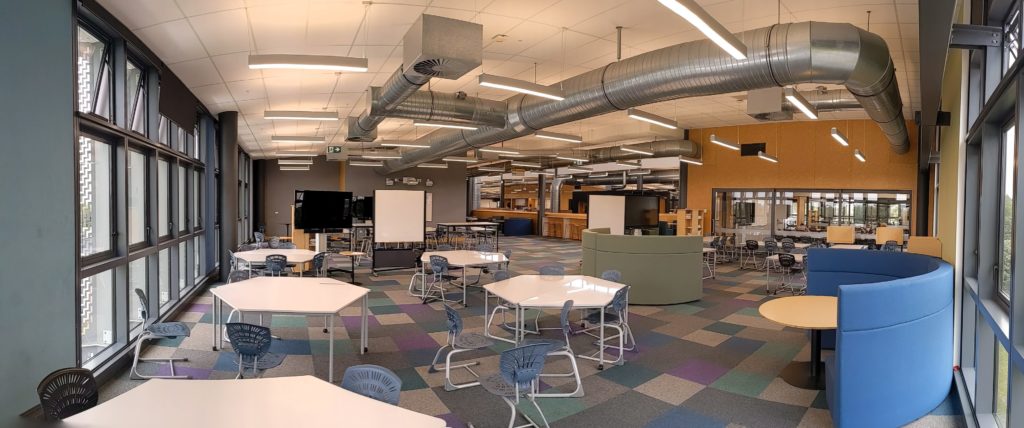 One teacher, however, disagreed that it is always noisy. They suggested that when senior students are in the school (I visited during NCEA exams) they help to regulate the junior students. Moreover, the open nature of the classroom means that multiple teachers can see students, which also means that behaviour and volume issues aren’t always as big an issue as one would imagine.